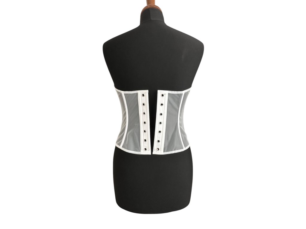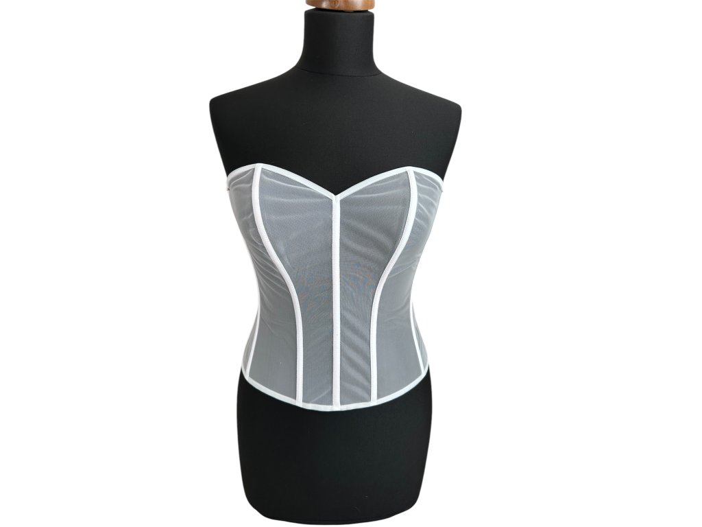 Hotový prodloužený korzet – živůtek je navržen tak, aby poskytl i prodlouženou siluetu. Díky poutkům na šněrování můžete snadno upravit obvod korzetu tak, aby dokonale padl vaší postavě. Tento kousek je ideální volbou pro svatební i společenské šaty, které vyžadují pevnější a dobře tvarovaný živůtek.