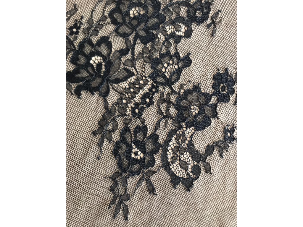 Krajka typu Chantilly s jemným květinovým vzorem je vynikající volbou pro šaty, kde dominuje elegance a sofistikovanost. Toto plátno, vyrobené bez korálků a flitrů, klade důraz na jemný a úhledný vzor, který dodává látkám a oděvům neobyčejnou křehkost a ženskost.