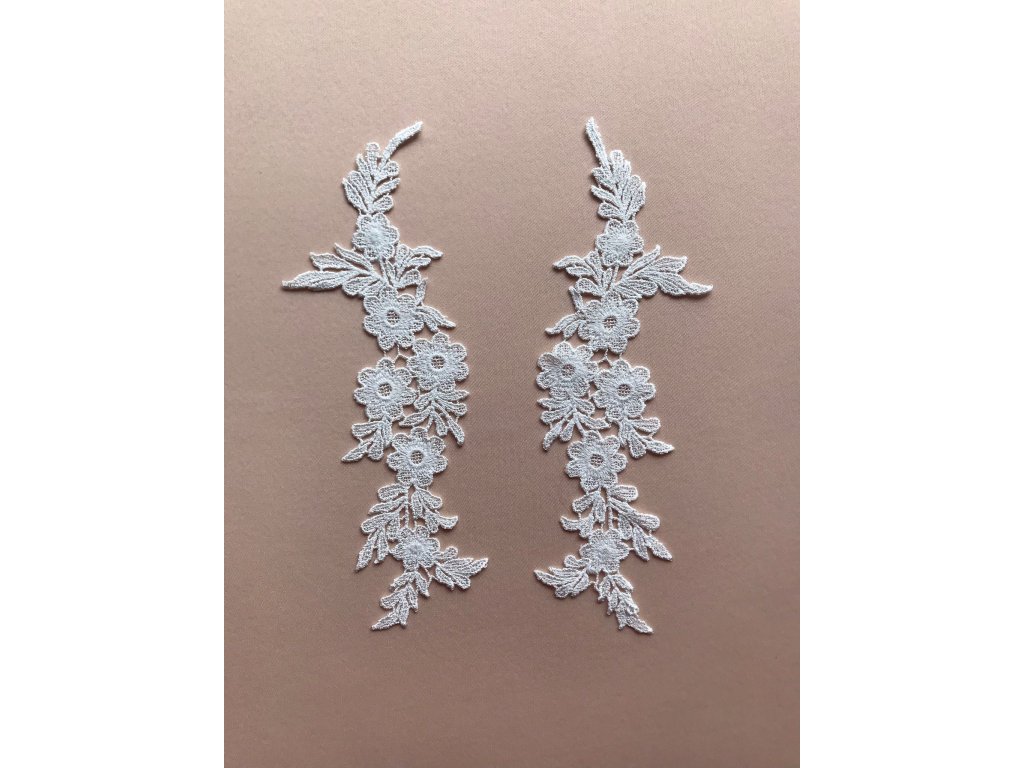 Krajková aplikace v jednoduchém a jednoduchém stylu typu pletené krajky je ideální pro vytváření minimalistických, ale elegantních detailů na oděvy. Tato aplikace je vhodná na svatební šaty, večerní róby, sukně, nebo dekorační předměty, kde její jemný a moderní vzhled přidává přirozený a sofistikovaný efekt. Pletená krajka nabízí jedinečnou texturu a univerzálnost pro různé designy.