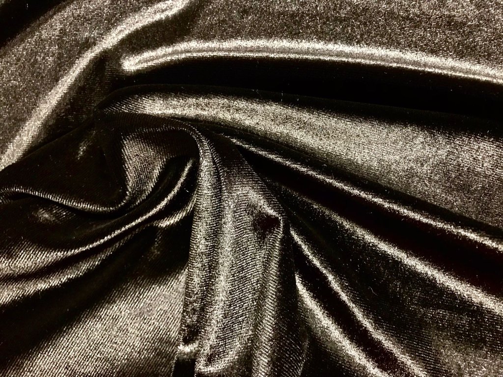 Krásný, elastický samet s utlumeným leskem. Neprůhledný a hladký na dotek. Je vhodný na společenské šaty, kostýmy i upnuté šaty.