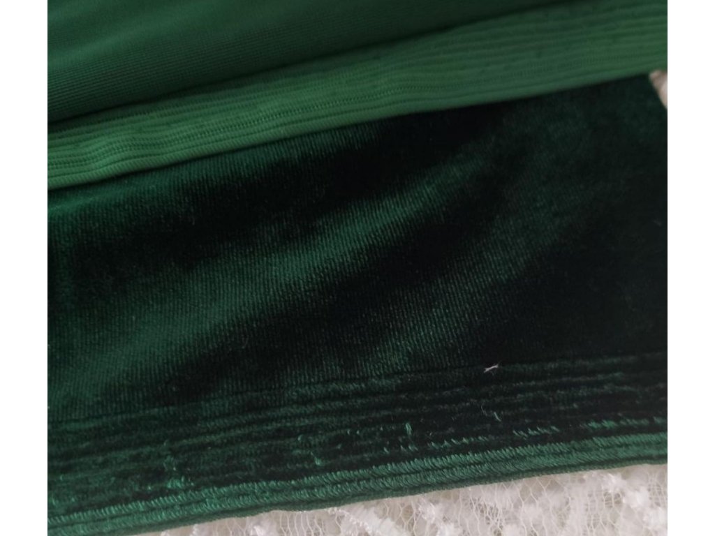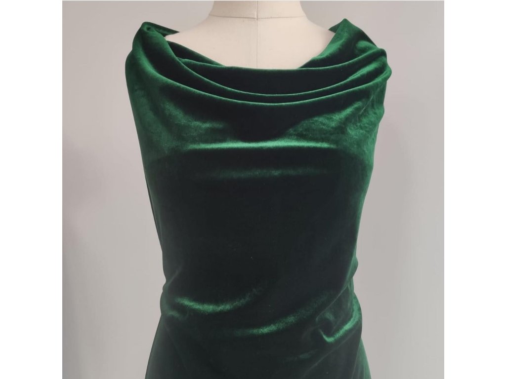 Krásný, elastický samet s utlumeným leskem. Neprůhledný a hladký na dotek. Je vhodný na společenské šaty, kostýmy i upnuté šaty.
