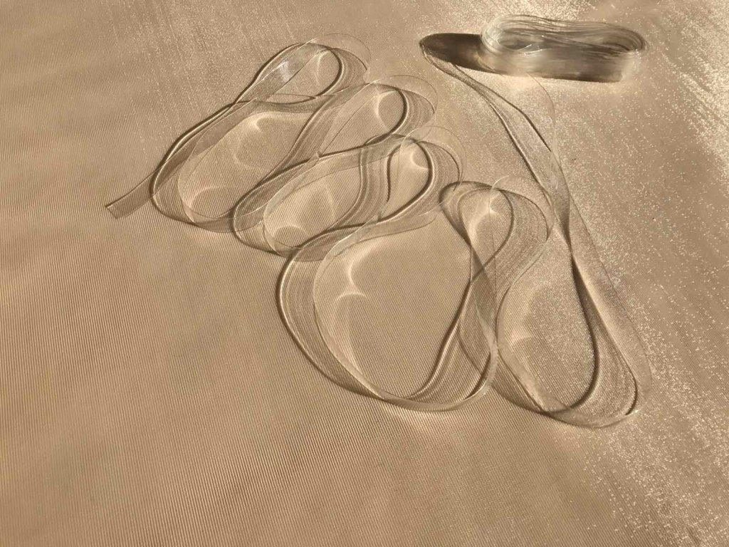 Silikonová stuha pevná, vhodná jako ramínka nebo poutka na šaty.