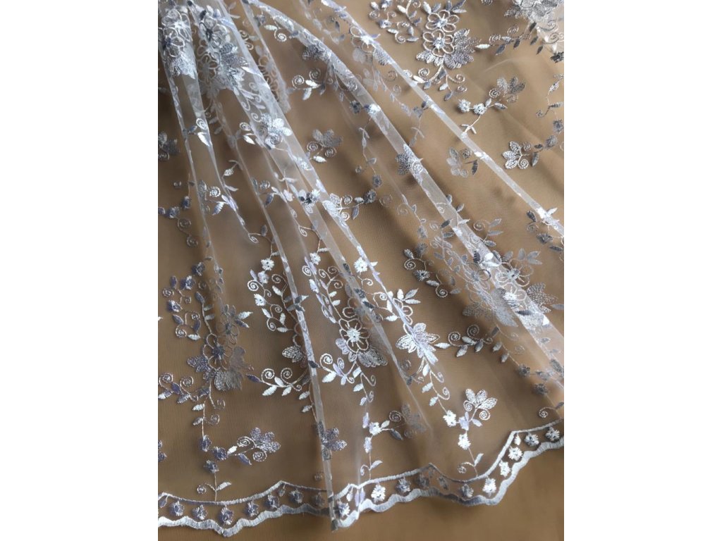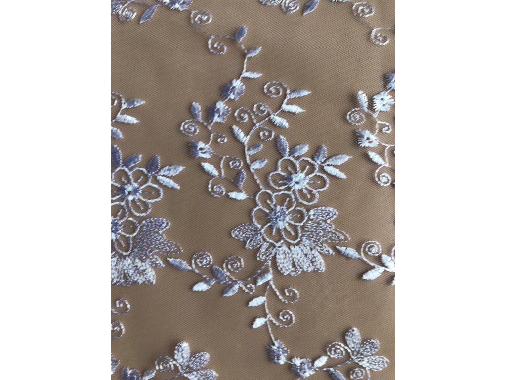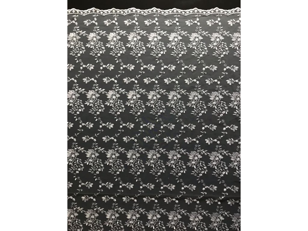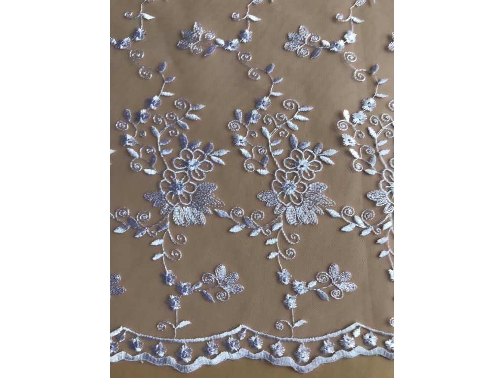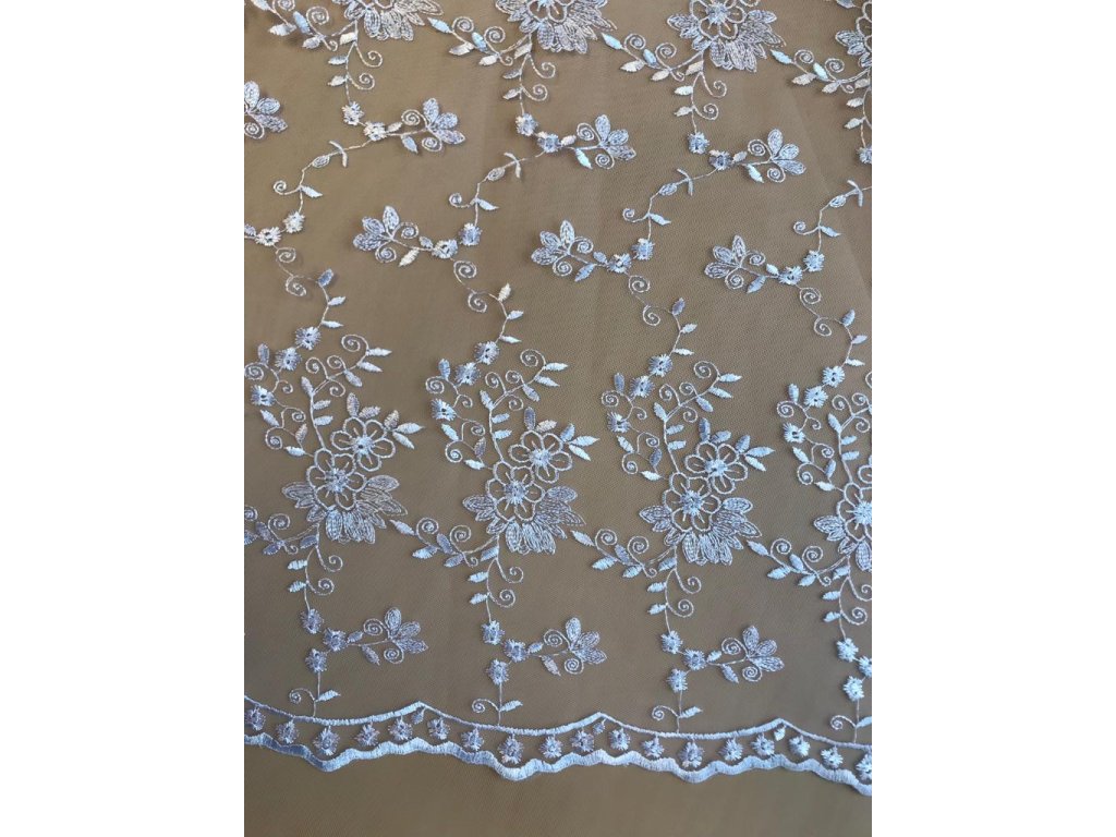 Krásná výšivka na tylu po celé ploše plátna. Krajka je měkká a příjemná, je vhodná na dětské šatičky - (nekousavá).