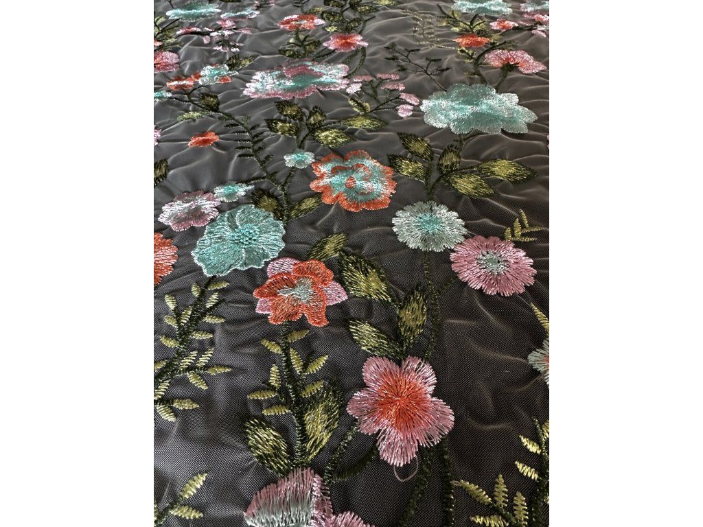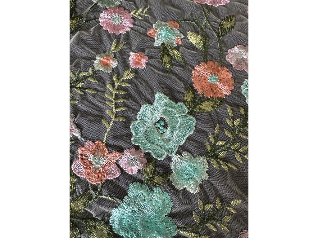 Jemná a vzdušná výšivka na tylu mix barev.