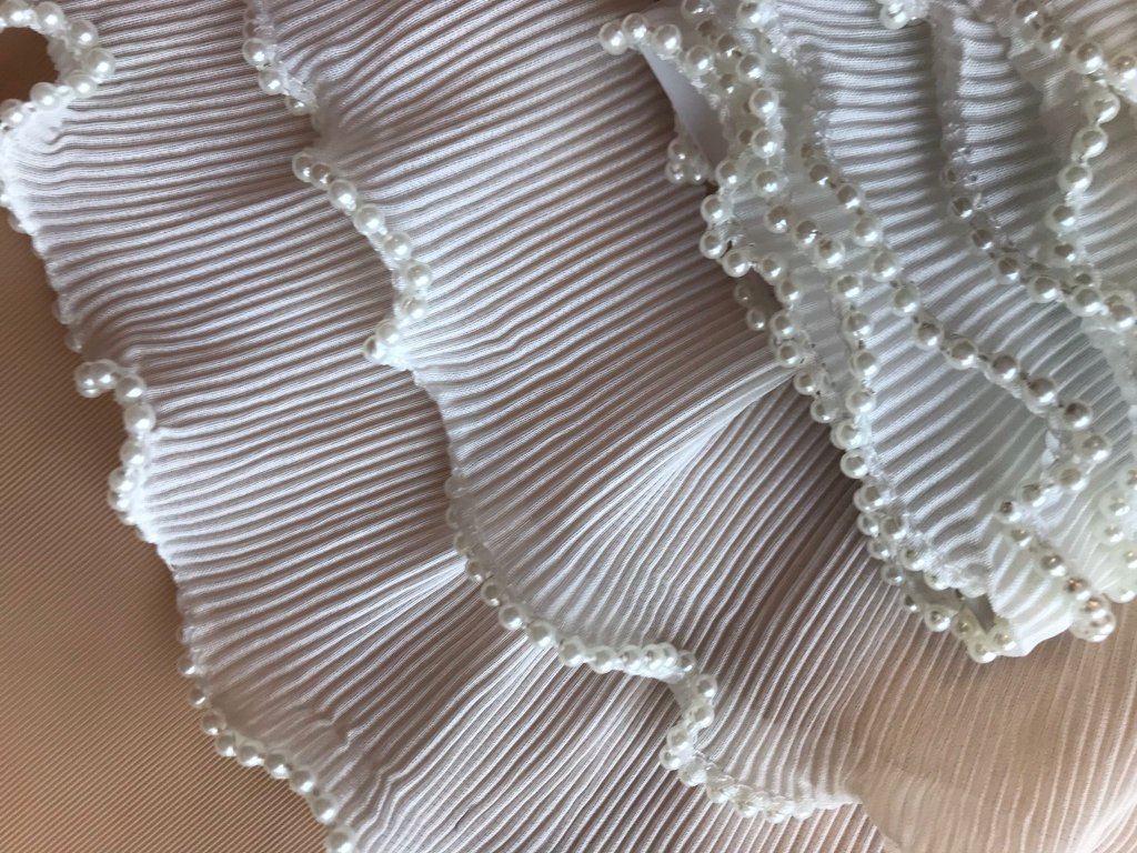 Plisovaný volánek zdobený perličkami.